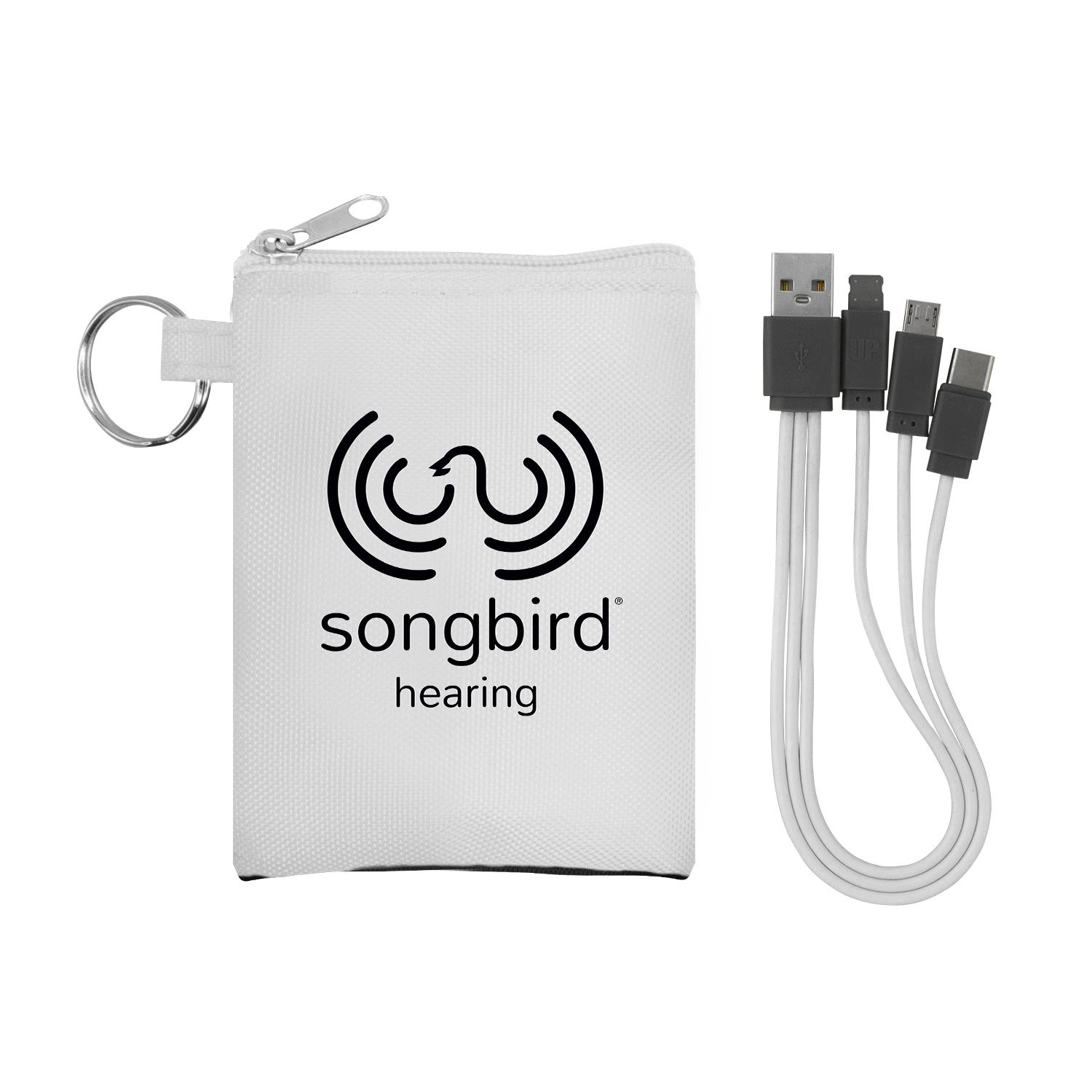 This 3-in-1 Charging Cable with Matching Color Pouch features a key ring, micro USB and type C USB, compatible with Apple® 8-pin devices. Makes it easy to charge any device when needed and you can charge multiple devices at once. Available in 8 different colors.