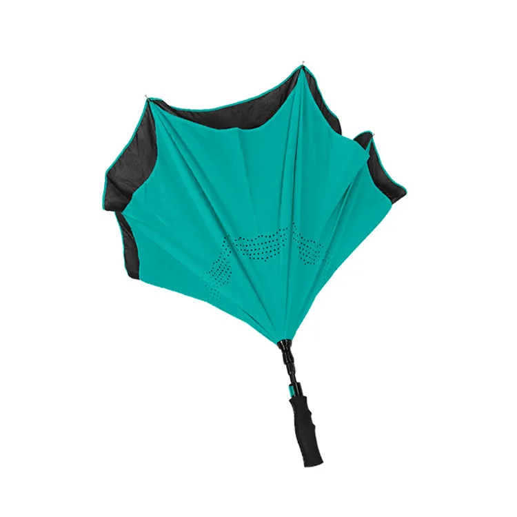 The auto-open Inversa Inverted Umbrella is designed to not only protect you from the rain, but also from a rain-soaked umbrella. With a 48" arc, double-layer canopy and all-fiberglass construction, the windproof Inversa closes in reversible fashion, keeping the wet side of the umbrella contained and away from you. This intelligent design also makes it easier to open and close from inside doorways and cars, so you stay dry from start to finish. The Inversa is also self-standing when closed, for additional convenience and storage options.