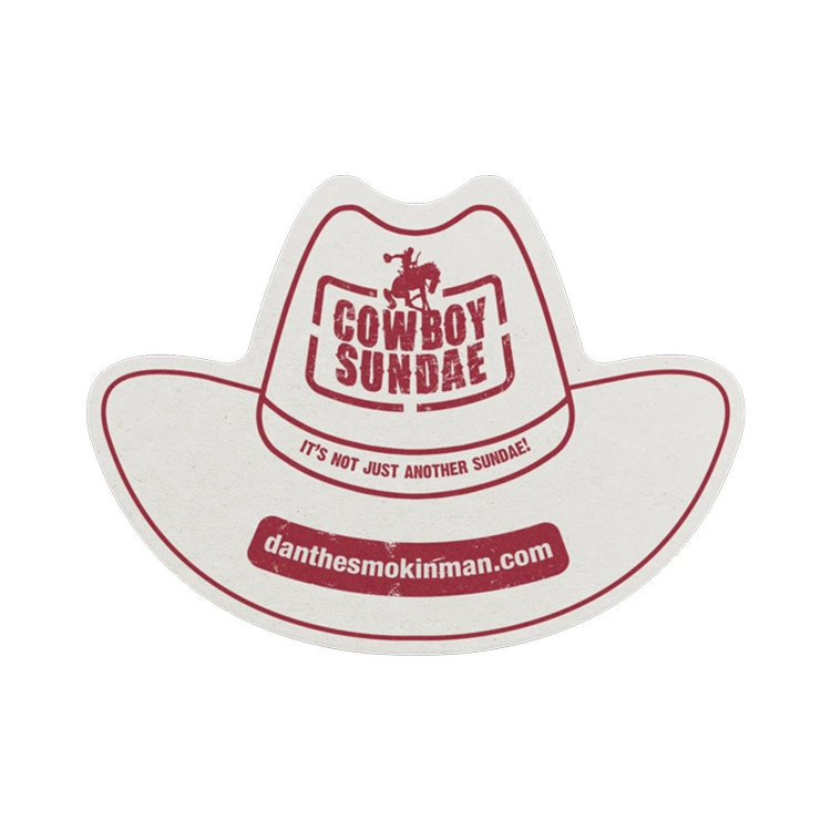 Protect your furniture with these custom coasters! Perfect for bars, restaurants and anywhere else drinks are served, these 4" cowboy hat coasters are made from 55 pt. white high-density pulpboard, which is biodegradable, recyclable and made from renewable resources. This eco-friendly product is made and printed in the USA. Variation of coaster material "brightness" is not considered a defect.