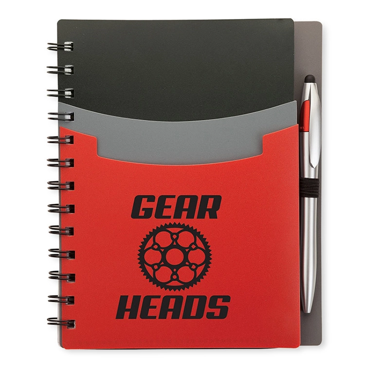This tri-tone notebook blends function with style, featuring a durable polypropylene cover, 80 lined pages, and smart pocket storage. Two exterior and one interior pocket keep essentials close, while the included twist-action pen doubles as a stylus for touchscreen devices. Designed for on-the-go organization and multitasking.