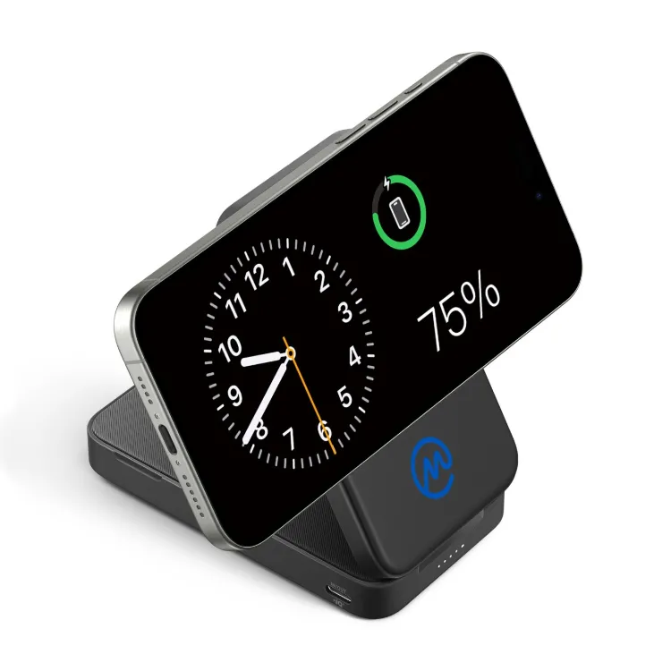 This versatile 6600mAh power bank functions as both a wireless charging stand and a portable charger. With Qi2-certified 15W wireless output and magnetic alignment for iPhone 12 and newer, it charges devices quickly and securely. The adjustable angle enhances visibility for calls or content, and the USB-C port provides wired charging with automatic output adjustment. Ideal for workstations, travel, or hybrid setups.