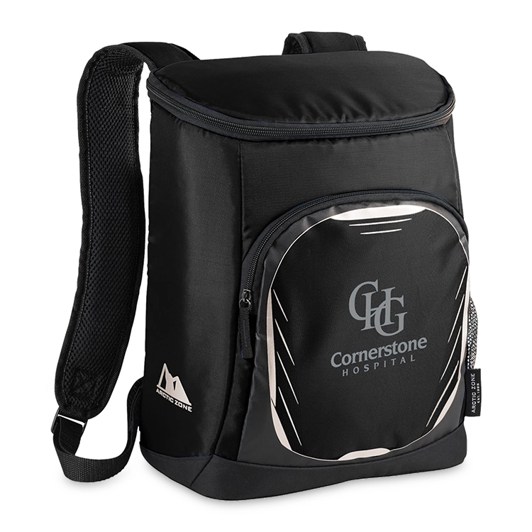 The Arctic Zone Cooler Backpack - 18 Can is the perfect blend of convenience and performance, designed to keep your beverages cool on the go. With an 18-can capacity and made from durable 420D polyester, this backpack cooler features Ultra Safe® lining to prevent leaks and maintain cold temperatures. High-density thermal insulation ensures your contents stay chilled, while the large zippered top allows for easy access and cleaning. Adjustable shoulder straps with extra padding provide comfortable carrying, and the exterior zippered pocket and mesh pocket offer additional storage for your essentials. This cooler backpack is ideal for any adventure, from picnics to outdoor events.