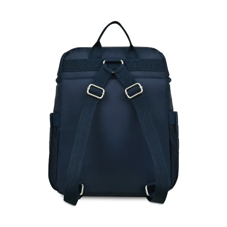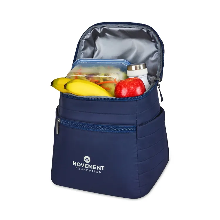 The Aviana Mini Backpack Cooler - 12 Can is the stylish and practical solution for keeping your items cool during lunch outs, picnics, and barbecue parties. Crafted from durable 380T nylon fabric, it features elegant quilted details and satin nickel accents. With a 12-can capacity and PEVA lining, this cooler offers a wide zippered opening for maximum storage. The quilted side pockets and front zippered pocket provide the perfect spots for stashing snacks, cash, or keys. Designed for convenience, it includes adjustable backpack-style shoulder straps and a top grab handle for easy carrying. Plus, it's a PVC-free product, making it a smart choice for any outing.