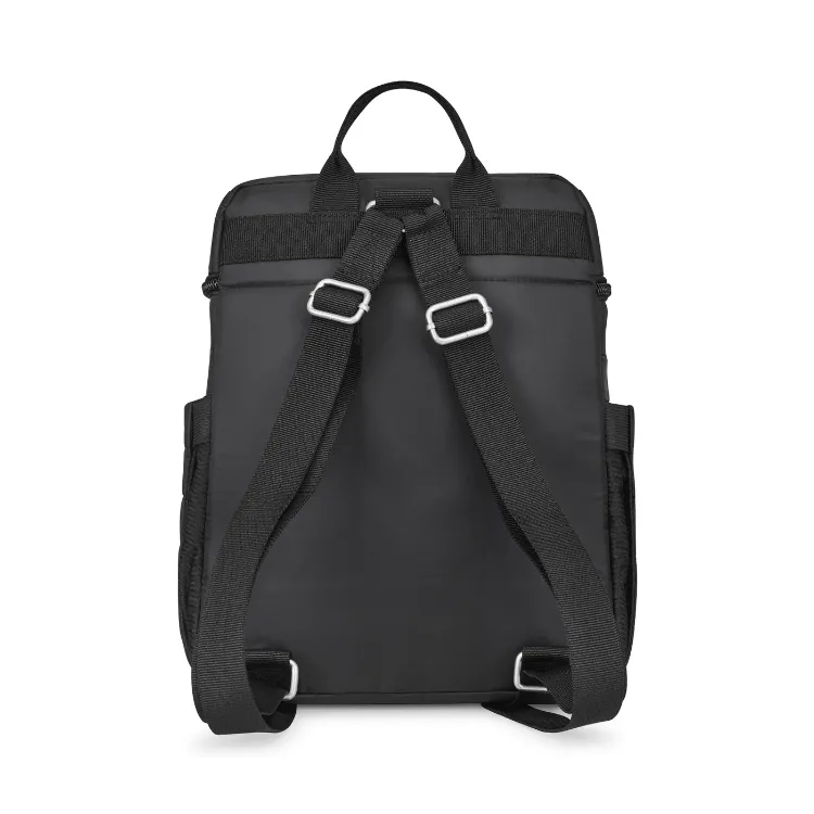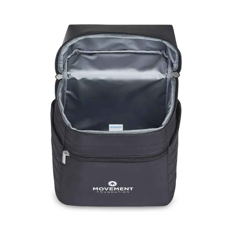 The Aviana Mini Backpack Cooler - 12 Can is the stylish and practical solution for keeping your items cool during lunch outs, picnics, and barbecue parties. Crafted from durable 380T nylon fabric, it features elegant quilted details and satin nickel accents. With a 12-can capacity and PEVA lining, this cooler offers a wide zippered opening for maximum storage. The quilted side pockets and front zippered pocket provide the perfect spots for stashing snacks, cash, or keys. Designed for convenience, it includes adjustable backpack-style shoulder straps and a top grab handle for easy carrying. Plus, it's a PVC-free product, making it a smart choice for any outing.