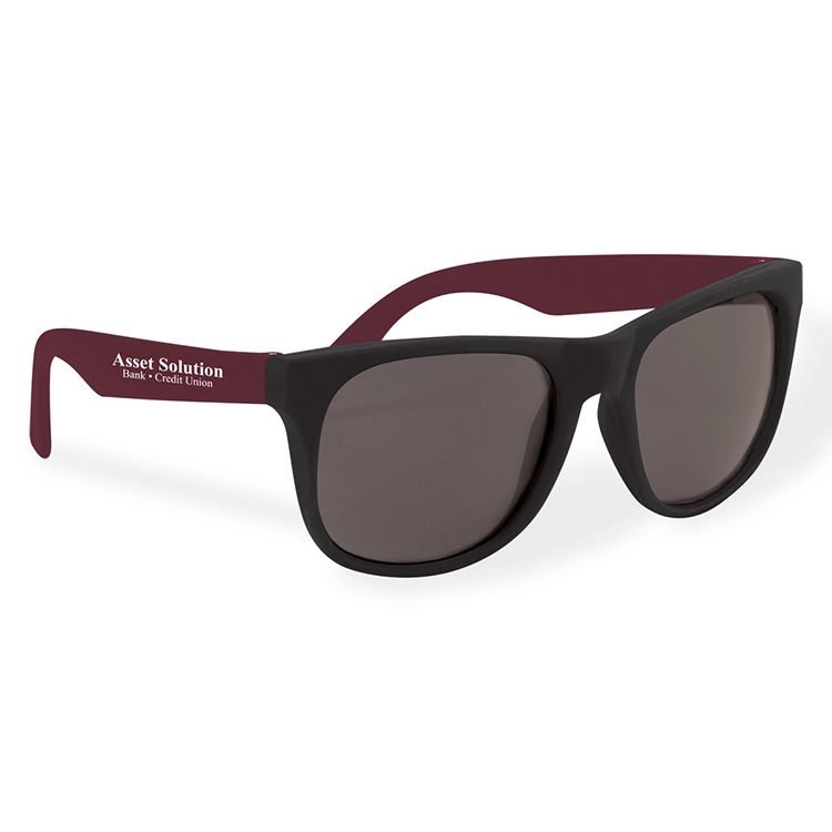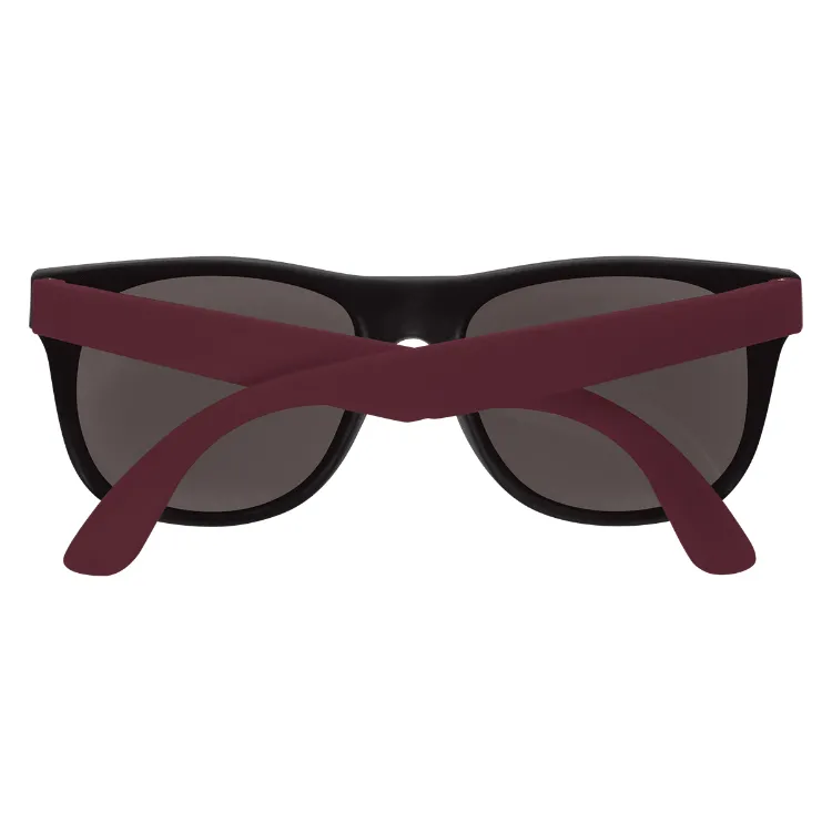 These black front frame sunglasses with colored temples are CPSIA compliant and made out of ABS-PMMA material. It has UV400 lenses to provide 100% UVA and UVB protection to keep your eyes protected from the sun. They come in a variety of fun colors, making them a perfect choice for any outdoor activity.