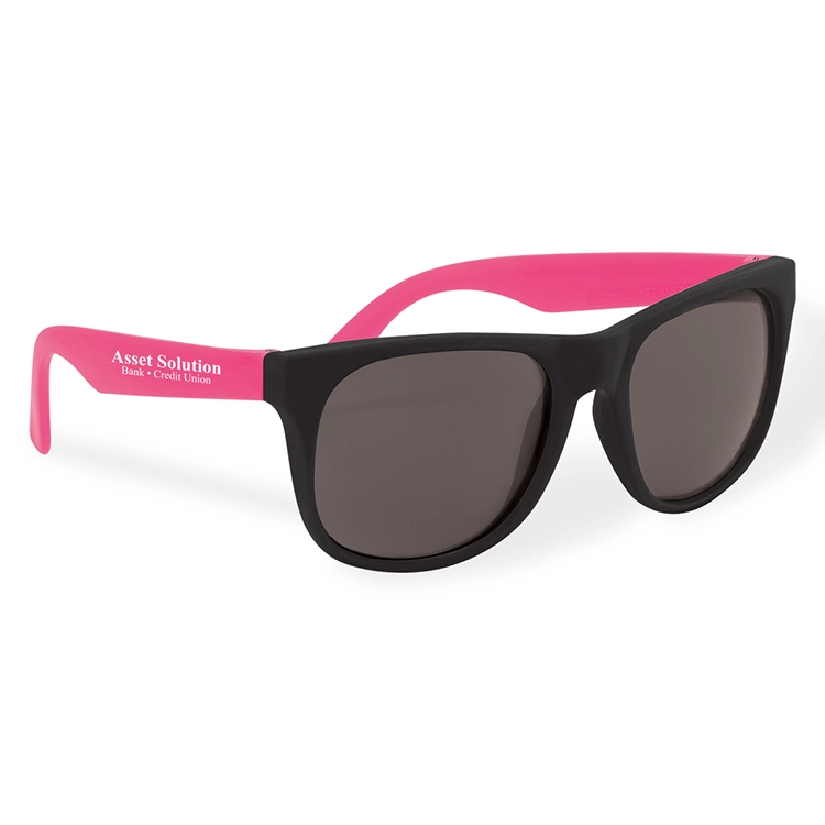 These black front frame sunglasses with colored temples are CPSIA compliant and made out of ABS-PMMA material. It has UV400 lenses to provide 100% UVA and UVB protection to keep your eyes protected from the sun. They come in a variety of fun colors, making them a perfect choice for any outdoor activity.