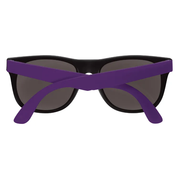 These black front frame sunglasses with colored temples are CPSIA compliant and made out of ABS-PMMA material. It has UV400 lenses to provide 100% UVA and UVB protection to keep your eyes protected from the sun. They come in a variety of fun colors, making them a perfect choice for any outdoor activity.