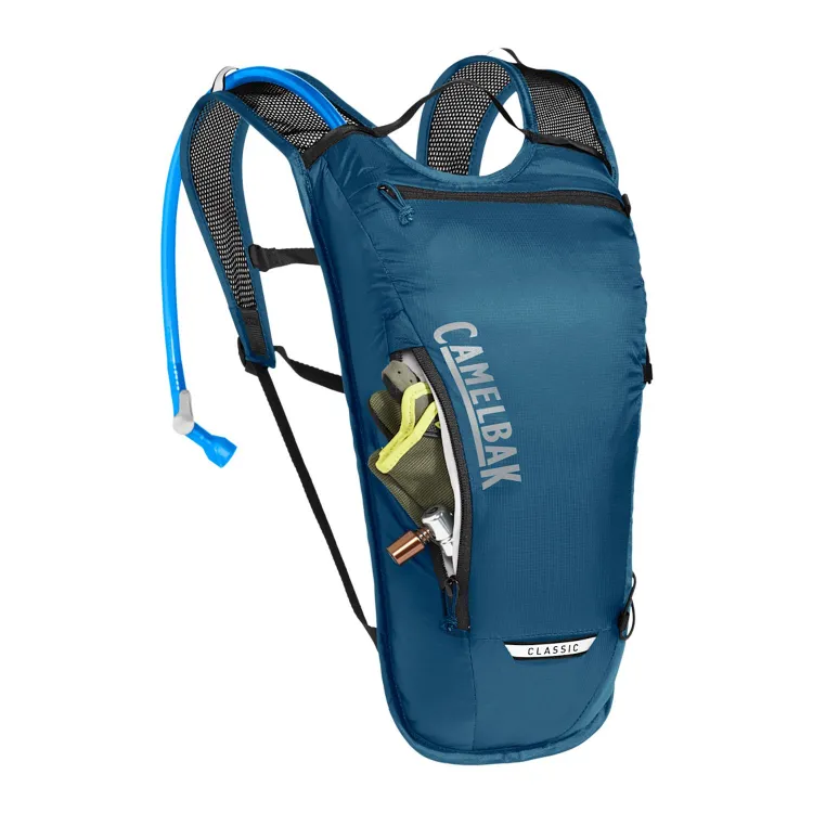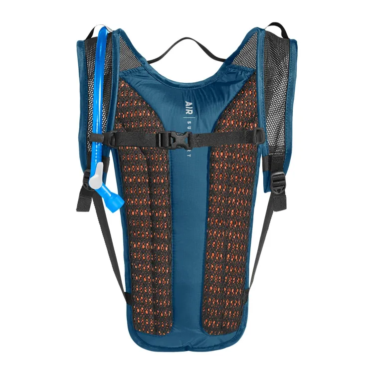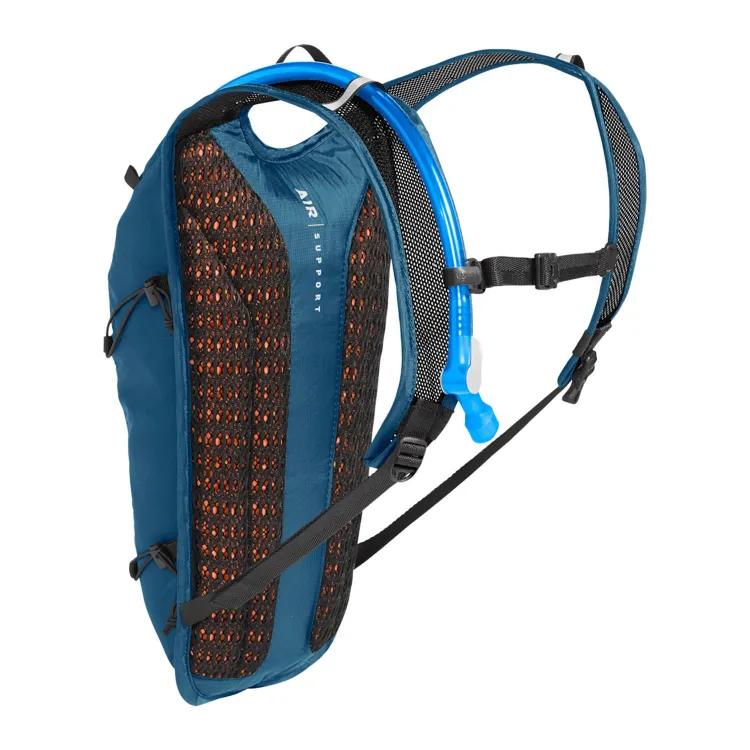 Engineered for hydration and streamlined storage, this backpack includes a 2-liter Crux® reservoir with Quicklink™ disconnect and an additional 2 liters of cargo space. The Air Support™ Light back panel uses body-mapped ventilation, paired with a breathable harness and adjustable sternum strap for stability. External bungee overflow expands carrying capacity, while integrated tool organization, a secure zippered pocket, tube management, and a light loop support efficient trail use.