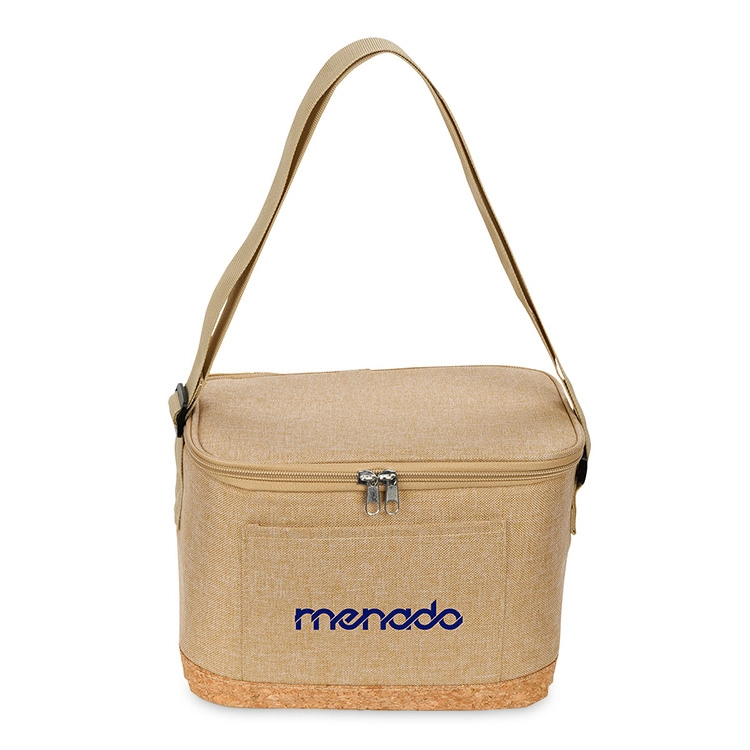 The Carina rPET and Cork Insulated Cooler Bag - 6 Can is a stylish and eco-friendly solution for keeping your food and drinks perfectly chilled or warm for up to 4 hours. Crafted from 600D RPET polyester with an elegant cork trim along the bottom edge, this cooler bag combines sustainability with a sophisticated look. It features a full zippered top closure with two zipper pulls for easy access and security. The adjustable carrying strap, ranging from 24" to 46", ensures comfortable transport. With a 6-can capacity and FDA compliance, the Carina Cooler Bag is perfect for picnics, backyard parties, and camping trips.
