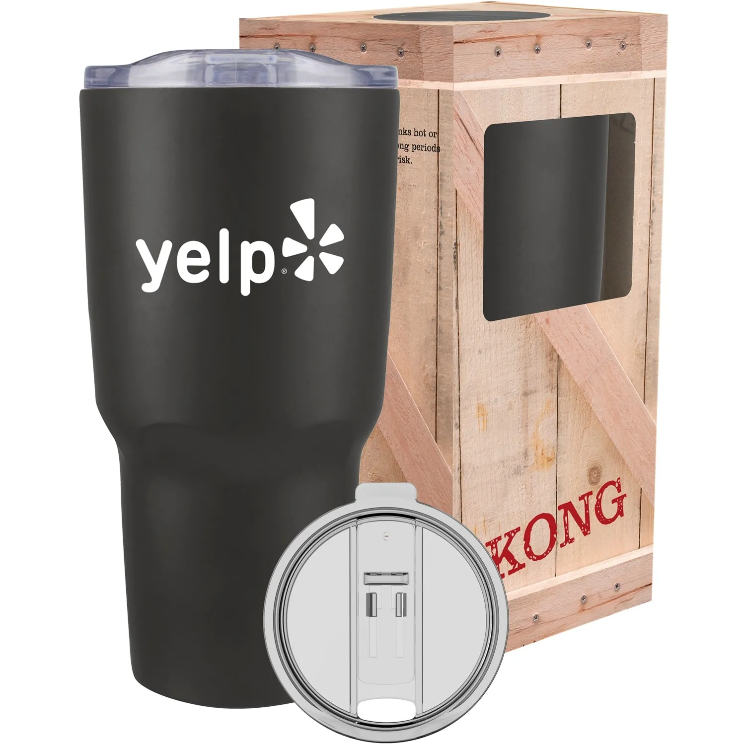 The Clear Lid Xtra Large KONG Insulated Tumbler - 30 Oz is a double-wall insulated tumbler, inner wall is made with food grade 304 Stainless Steel and outer wall is made with 201 Stainless Steel. It is vacuum insulated, it can keep iced drinks cold for 36 hours and hot drinks for over 2.5 hours. It includes a clear leak resistant lid, perfect for use with or without a straw. This item will be a great personal gift or it can be included as a welcoming gift for new employees, it comes with an extra-long straw and a retail style gift box. Hand wash recommended and not intended for microwave use.