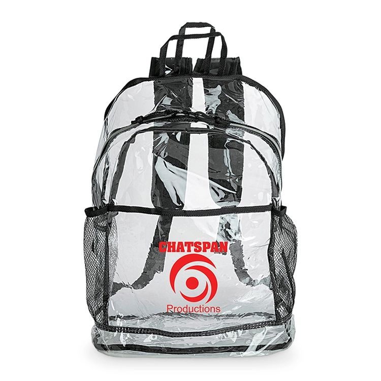 Designed for environments with security checkpoints, this clear PVC backpack offers visibility and function in equal measure. The zippered top closure secures larger items, while the front pocket and mesh sides provide quick-access storage. With padded, adjustable shoulder straps and reinforced handles, it’s built for comfortable daily use.