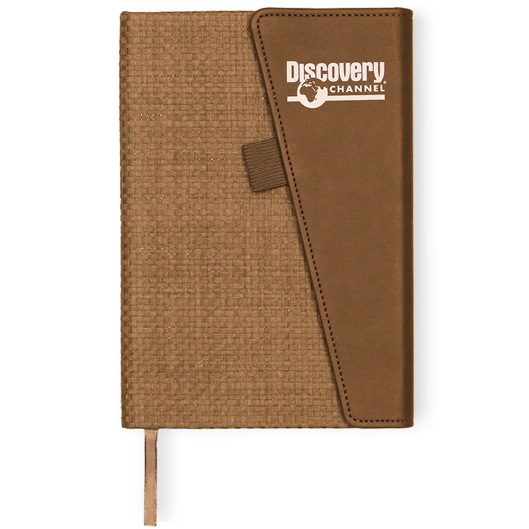 This notebook merges elegance with utility, featuring a woven texture body and a faux leather magnetic closure. With 80 lined pages, it’s ideal for planning or note-taking during executive meetings. A bookmark and front cover pen loop add functional sophistication in a polished design.