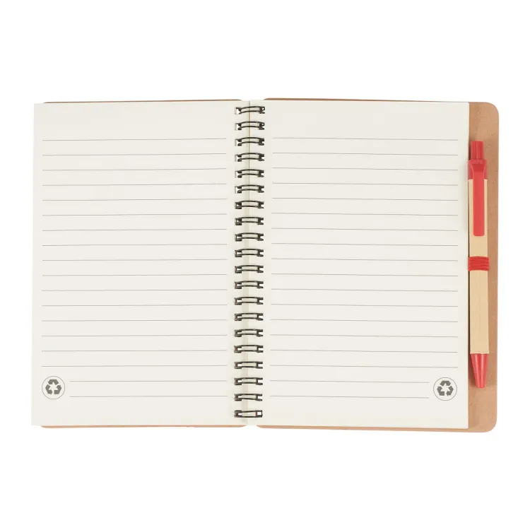 Made with recycled materials, this spiral-bound notebook includes 60 sheets of FSC® Mix cream paper and a coordinated pen loop with matching ballpoint pen. Pens are packed separately for convenience. As part of the EcoSmart® line, 1% of sales support environmental nonprofit organizations.