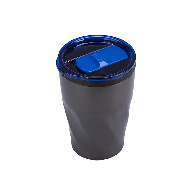 The Elon 12 oz. coffee tumbler is the perfect fit for most single serve coffee brewing systems. The double wall construction with a stainless steel outer wall protects your hand from the heat while you enjoy a cup of joe. The translucent colored easy sip lid with a silicone ring and sliding opening to prevent spillage, couples with the attractive gunmetal coating and comfortable twist grip. This cup's non-slip base makes it the perfect desk companion, and fits most car cup holders - perfect when on the go. FDA compliant and BPA free.