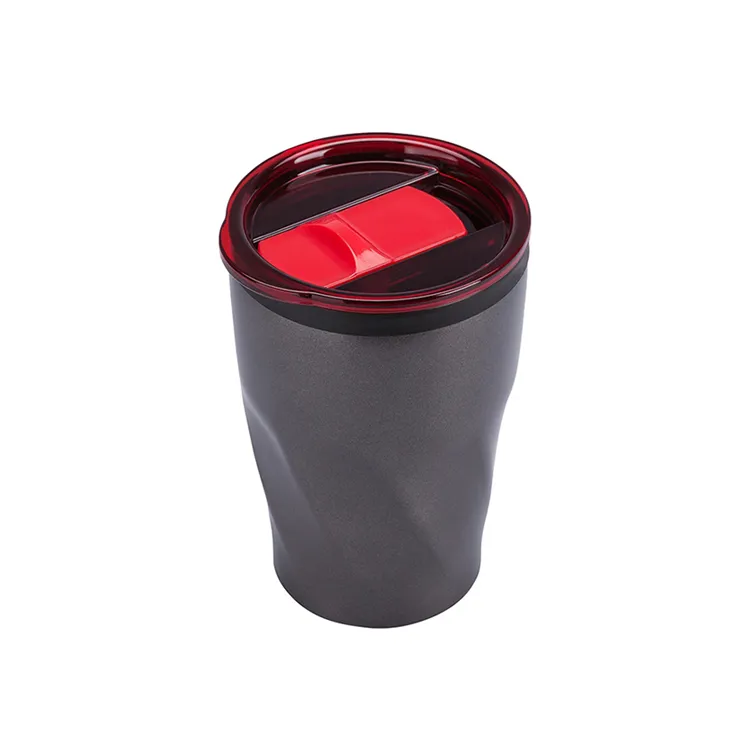 The Elon 12 oz. coffee tumbler is the perfect fit for most single serve coffee brewing systems. The double wall construction with a stainless steel outer wall protects your hand from the heat while you enjoy a cup of joe. The translucent colored easy sip lid with a silicone ring and sliding opening to prevent spillage, couples with the attractive gunmetal coating and comfortable twist grip. This cup's non-slip base makes it the perfect desk companion, and fits most car cup holders - perfect when on the go. FDA compliant and BPA free.