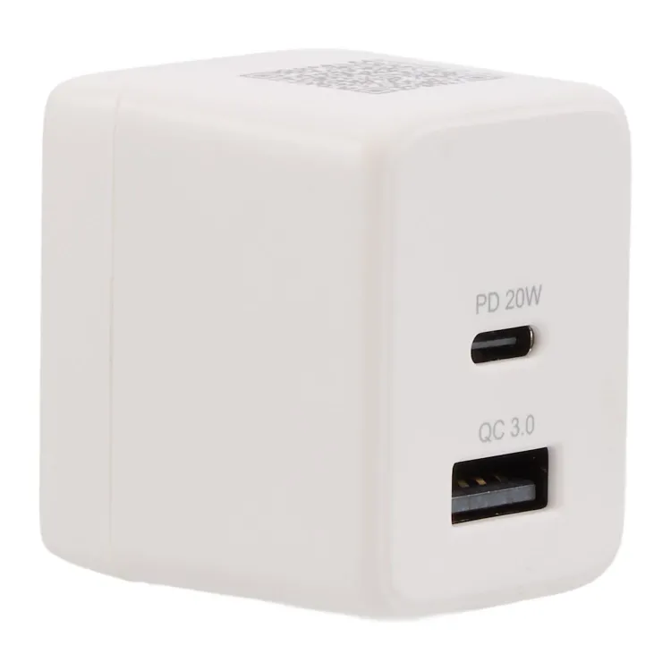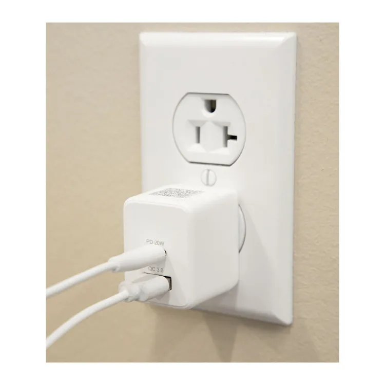 This compact wall charger delivers efficient dual-device charging with both USB-A and Type-C output ports. The USB-A port provides up to 18W of power, while the Type-C port supports up to 20W for fast charging compatible devices. Foldable AC prongs allow the charger to pack easily for travel or store neatly in bags and drawers. Its streamlined size fits well in tight outlet spaces while powering phones, tablets, earbuds, and other everyday electronics.