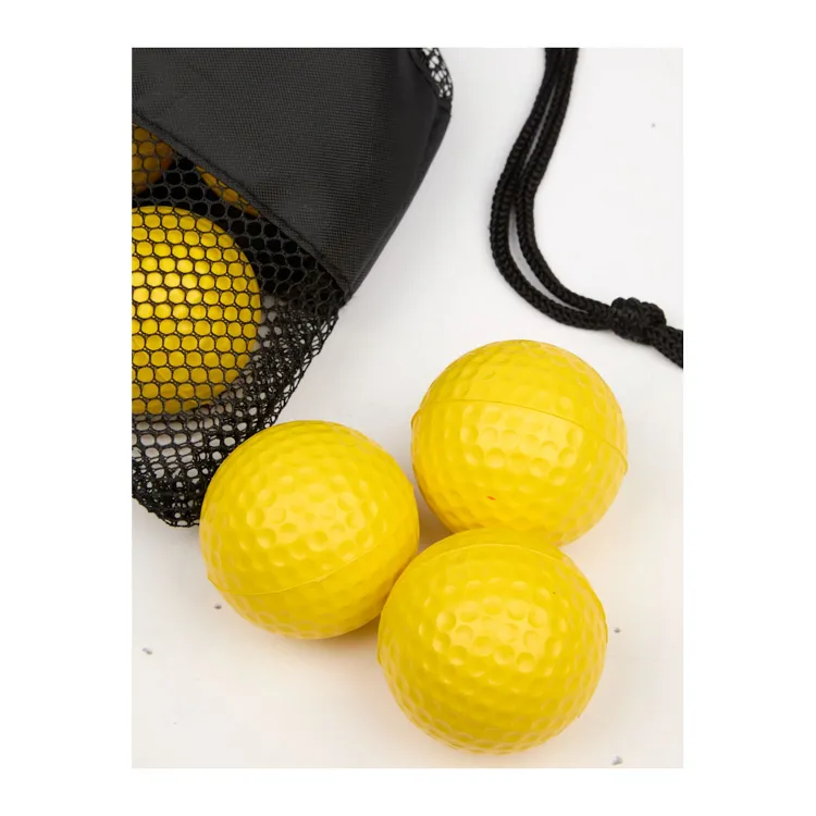This foam practice golf ball set provides a controlled way to work on swing mechanics and shot accuracy. The set includes nine lightweight foam balls designed to reduce impact during indoor or backyard practice. A mesh drawstring pouch keeps the balls organized and makes transport simple between practice sessions. The compact format fits easily in a golf bag, offering a convenient training option for golfers developing consistency and control.