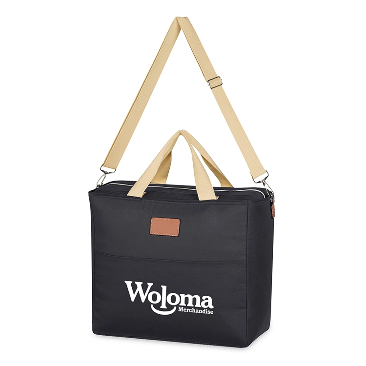 The Hefty Cooler Tote Bag is your go-to for carrying foods and drinks in style, whether for lunch at work or a picnic at the park. Crafted from durable 600D polyester, it features foil-laminated PE foam insulation to keep your items fresh. The zippered main compartment and large front pocket offer ample storage, while the 7.5" gusset adds extra space. With a detachable/adjustable shoulder strap and 15" web carrying handles, this versatile cooler tote ensures comfortable transport. Spot clean and air dry for easy maintenance.