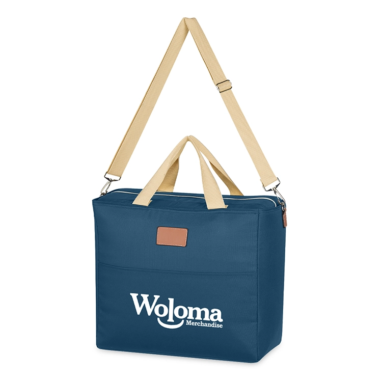 The Hefty Cooler Tote Bag is your go-to for carrying foods and drinks in style, whether for lunch at work or a picnic at the park. Crafted from durable 600D polyester, it features foil-laminated PE foam insulation to keep your items fresh. The zippered main compartment and large front pocket offer ample storage, while the 7.5" gusset adds extra space. With a detachable/adjustable shoulder strap and 15" web carrying handles, this versatile cooler tote ensures comfortable transport. Spot clean and air dry for easy maintenance.