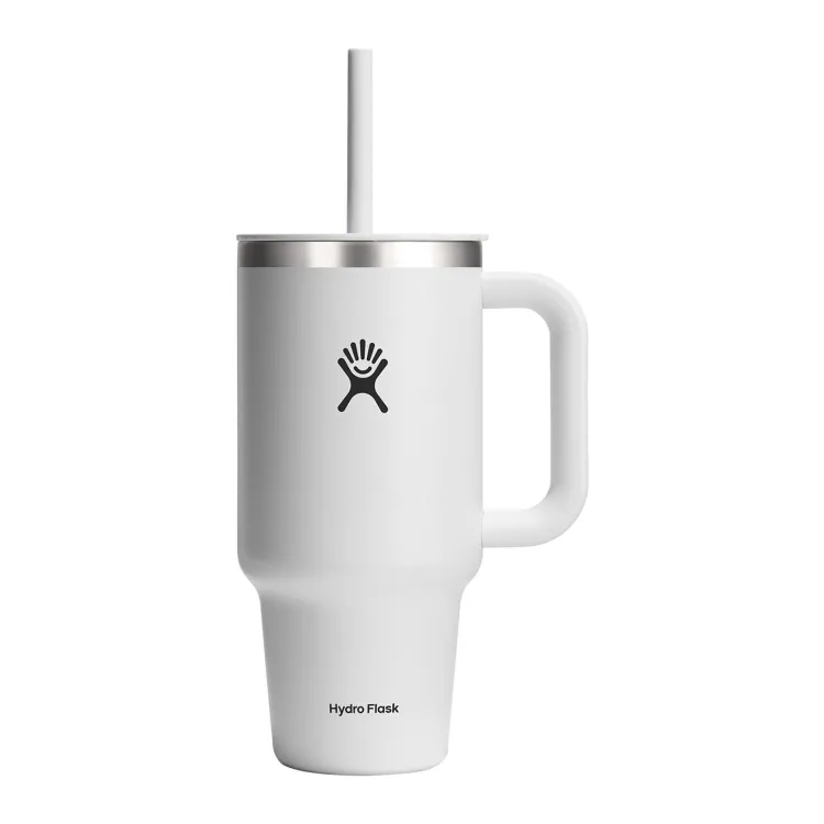 The Hydro Flask All Around Travel Tumbler with Straw - 32 oz is here to hydrate more and refill less. A very comfortable, extremely durable handle takes it to the next level, and the large size can go anywhere, even fitting most cupholders. TempShield® double-wall insulation ensures cold stays cold, and the flexible straw is easy to sip any which way.