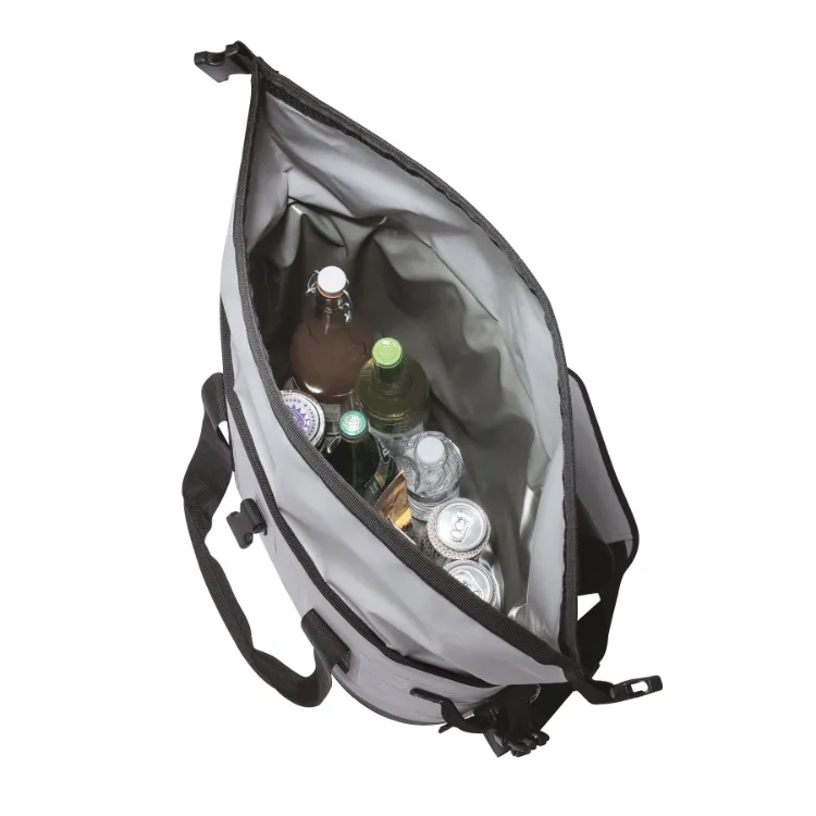 The iCOOL Xtreme Adventure High-Performance Cooler Bag - 24 Can is constructed from welded heavy duty 500D PVC tarpaulin on the exterior, includes 1/2" foam insulation and holds over 20 liters or 24 12 oz. cans in the leak proof welded thermoplastic polyurethane (TPU) main compartment. The easy roll-down top provides quick access to gear, has a hook and loop closure and is secured in place with three buckle straps. The exterior features webbing strap hold downs, 2 side handles, 2 tactical chain loops, 2" x 30” carry straps with padded neoprene handle and a heavy duty 2” x 53” removable and adjustable strap with shoulder pad. A portion of all proceeds is donated to Shelter to Soldier™, a non-profit organization that rescues dogs to train as service animals for veterans in need.