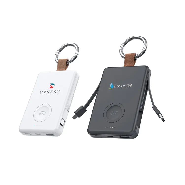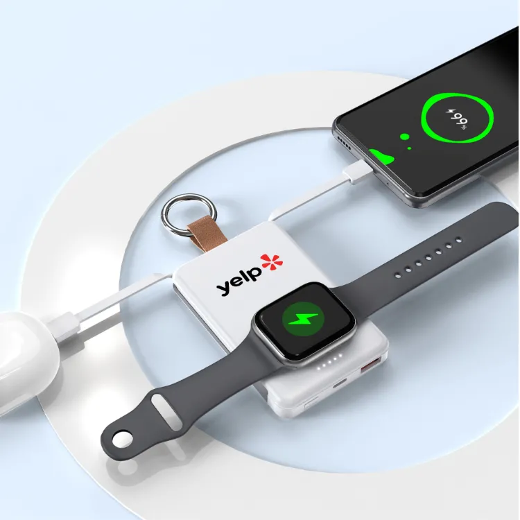 This compact 5,000 mAh charger offers unmatched versatility with support for both Apple and Samsung smartwatches. Built-in Type-C and Lightning cables, plus USB and Type-C ports, ensure seamless charging across your devices. A leather loop key ring adds portability and secure carry, ideal for travel or everyday use.