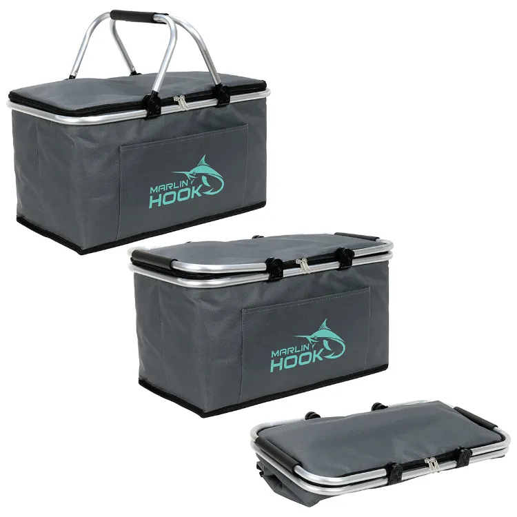 The Jamboree Insulated Hard Frame Picnic Basket is a must-have for any outdoor adventure, boasting a generous 36-can capacity and constructed from durable 600D polyester with an insulated foam interior to keep your refreshments perfectly chilled. Its 1/2" diameter metal frame around the top ensures stability, while the padded dual 6" hard frame metal handles are hinged and fold open for easy access. Featuring a dual-zippered top lid closure and accented with stylish black braided trim around the edges, this picnic basket also includes a large 11-1/2" x 6-1/2" front pocket for extra storage. Plus, it collapses flat for effortless travel and storage, making it the ideal companion for all your picnics and gatherings.