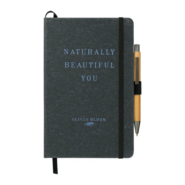 Bound in recycled leather, this journal combines eco-conscious materials with practical design. It includes 80 FSC® Mix lined pages, a color-matching elastic closure, ribbon marker, and pen loop. A back pocket provides extra storage. Sales support environmental nonprofits through 1% For The Planet.