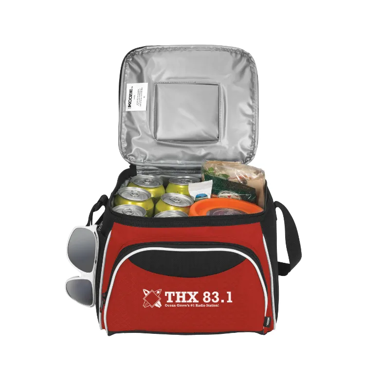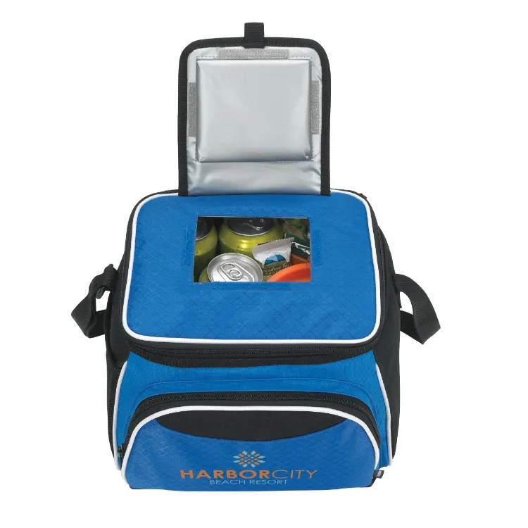 The Koozie Easy-Open Cooler - 8 Can is the perfect companion for keeping your refreshments cool and accessible during picnics, outdoor adventures, parties, and more. Crafted from durable 600D polyester and 420D ripstop polyester, this cooler boasts an 8-can capacity with a heat-sealed PEVA liner for excellent insulation. The zippered main compartment and zippered front pocket, along with a side mesh pocket, offer ample storage for all your essentials. The pull tab and hook-and-loop opening allow for quick and easy access, while the adjustable shoulder strap ensures comfortable carrying. Combining style and functionality, this cooler is your go-to for any outing.