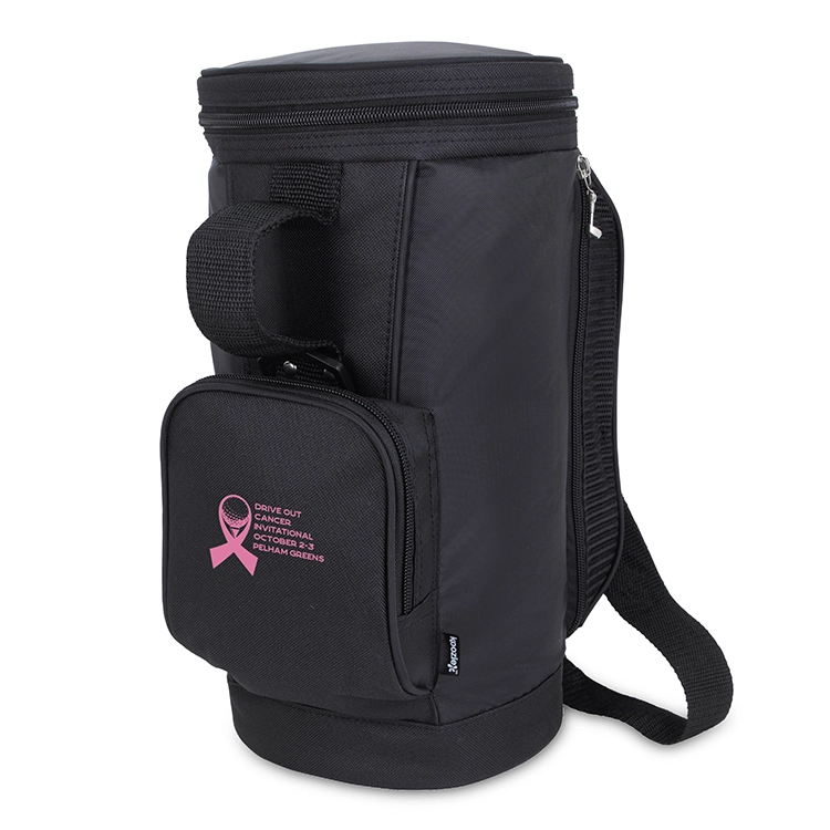 The Koozie Golf Back Nine Cooler - 9 Can is the ultimate accessory for your next outdoor adventure, featuring a spacious 9-can capacity and crafted from durable 190T polyester ripstop. This versatile cooler includes an insulated bag to keep your drinks chilled, along with multiple pockets for all your essentials. With a large back pocket equipped with side mesh and a zip closure, plus a convenient front zip pocket and handle, this cooler ensures easy access and organization. The adjustable shoulder strap makes it a breeze to carry, making it the perfect cooler for beach outings or park picnics.