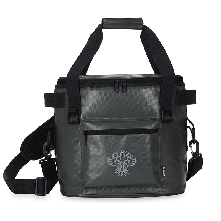 The Koozie Olympus Cooler - 24 Can is your go-to for any sporting event or outdoor adventure, offering ample space with a 24-can and 17L capacity. Made from durable tarpaulin material, it features a main zippered compartment and a front zippered pocket for easy access to your essentials. With attached bottle openers, wrapped carry handles, an adjustable/removable padded shoulder strap, and additional side carry handles, this cooler ensures effortless portability. The heat-sealed PEVA liner keeps your beverages cold, making the Koozie Olympus Cooler the perfect companion for all your outdoor activities.