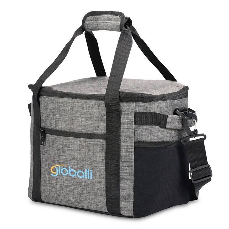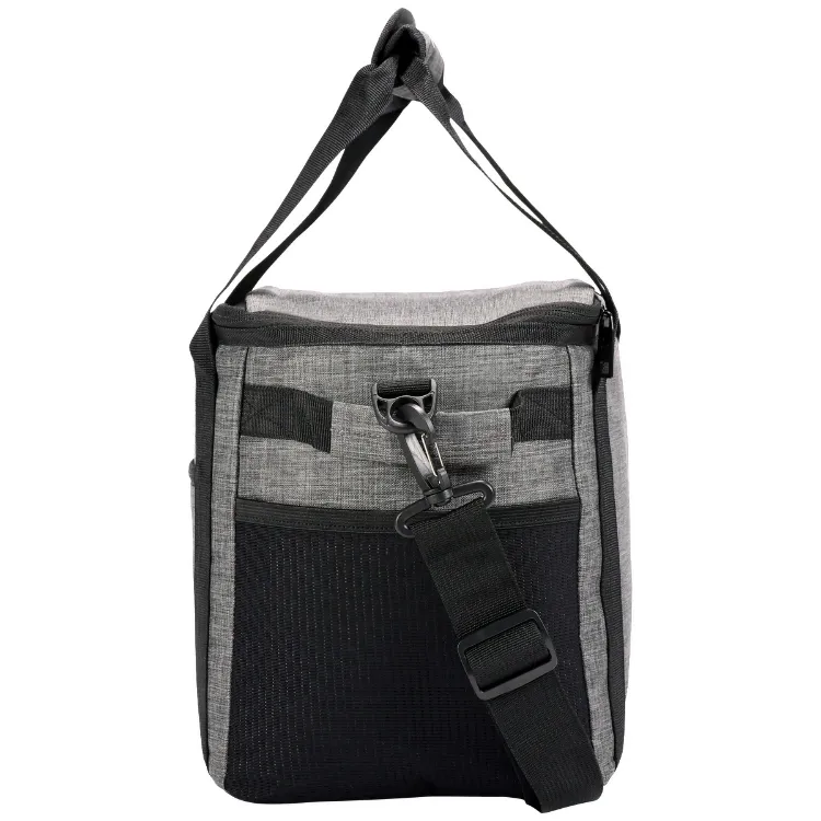 Designed for higher-volume needs, this heat-sealed cooler accommodates up to 24 cans within a structured, leak-resistant interior. The 300D heathered polyester exterior with PVC backing adds stability, while sealed seams help contain moisture. Multiple exterior pockets support accessory storage, and reinforced side handles with a padded grip enhance lift and transport. An adjustable, removable shoulder strap offers an alternate carry option for events, outings, or corporate distribution programs.