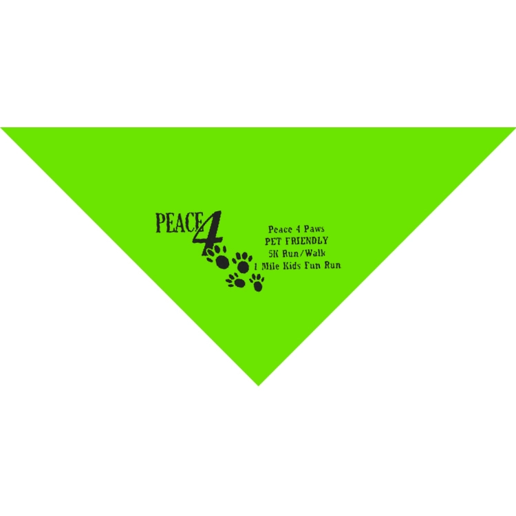 Hand out an easy way for clients and their four-legged family friends to promote your brand while looking great with this Large Soft Cotton Pet Bandana. Made of 100% cotton, it measures 18" x 18" x 29 and is available in a large array of bright and eye-catching colors. Simply add your company's name, logo and advertising message before handing it out at animal shows, shelters and pet stores. This is a great way to boost brand recognition for any pet-related business.