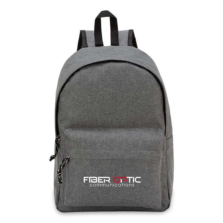 Crafted from durable 600 denier polyester, this everyday heather gray two-tone backpack is accented with black trim for a modern look. The zippered main compartment provides ample space for your essentials, while the small front zippered pocket keeps smaller items secure and accessible. Carrying comfort is assured with its webbed nylon handle and adjustable straps.