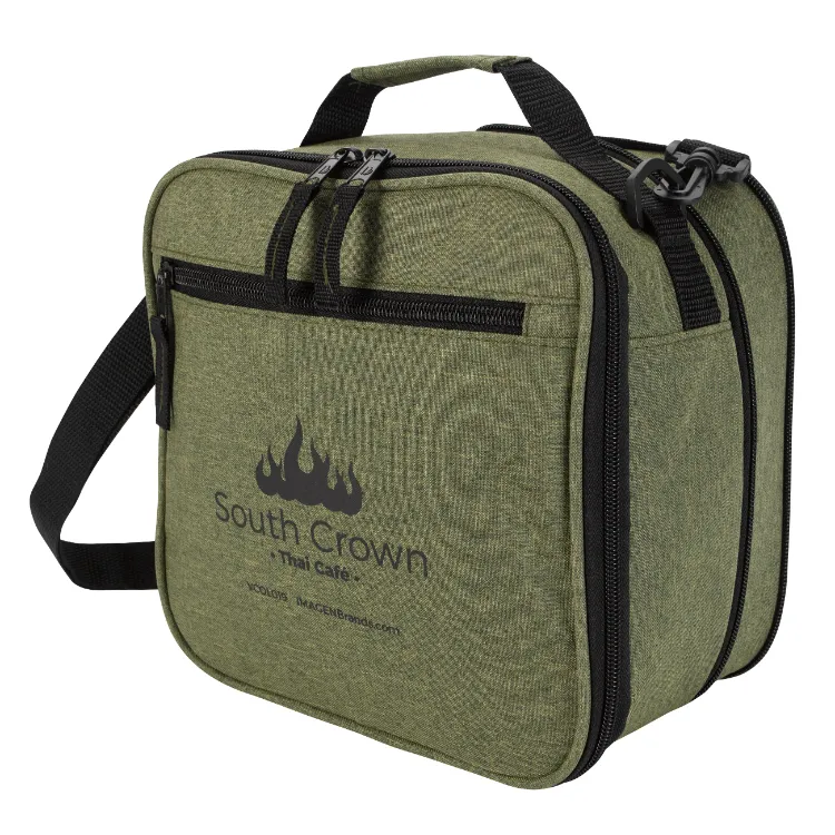 The Lunch Break Expandable Lunch Bag - 9.5" x 9.5" is your ideal companion for picnics and outdoor barbeque parties, made from durable 300D polycanvas and PE foam for excellent insulation. Designed with convenience in mind, it can expand an additional 2 inches in depth to accommodate extra snacks or fruit. The dual-pull zippered main compartment and zippered front pocket offer ample storage, while the adjustable shoulder strap and top handles provide versatile carrying options. Combining functionality with style, this expandable lunch bag ensures you have everything you need for your outdoor adventures.