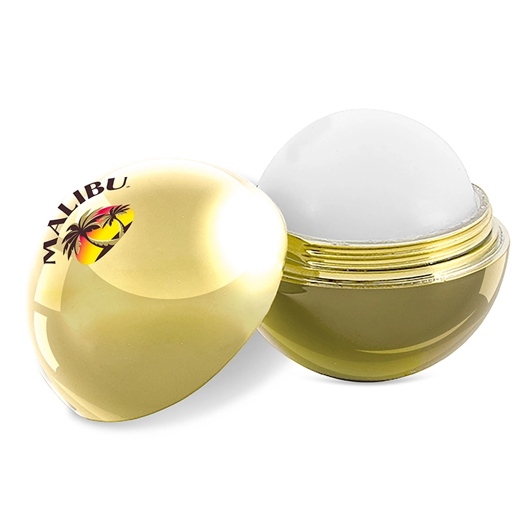 This metallic sphere lip balm delivers a smooth vanilla flavor in a compact plastic case. The round shape adds modern appeal, while the metallic finish draws attention to your brand. A secure snap closure keeps the balm fresh between uses. Ideal for giveaways, it offers both function and flair with space for bold imprinting.