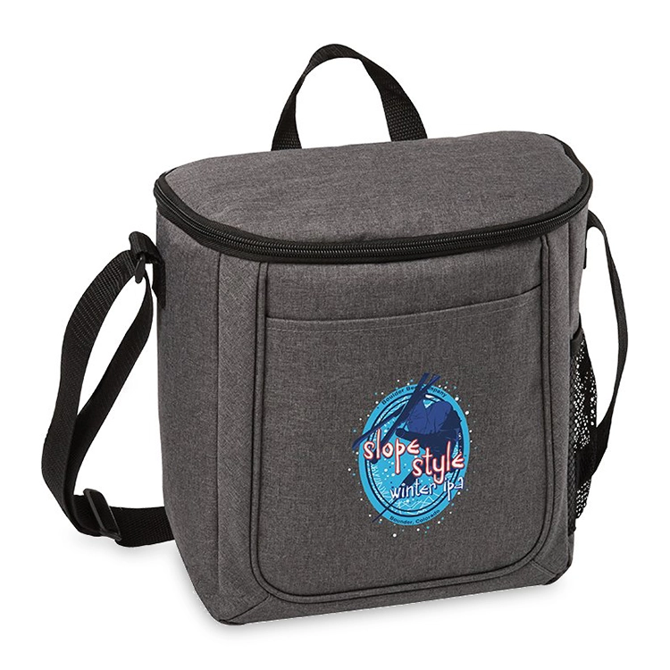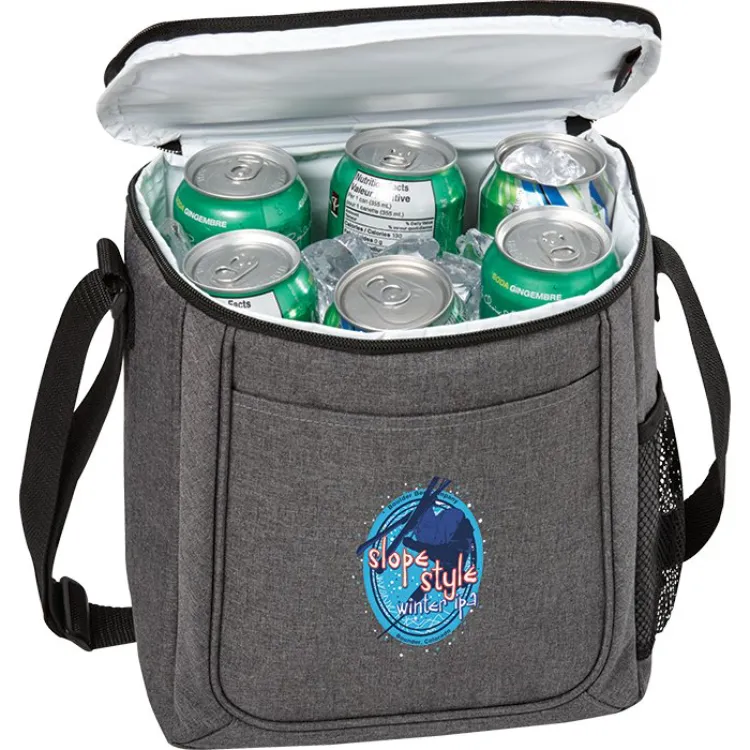 The Metropolitan Cooler Bag - 12 Can is the ideal companion for any outing with its 7-liter storage capacity and phthalate-free, 300D two-toned polyester construction. This stylish cooler bag features a full-length front slash pocket and a side mesh elastic pocket for additional storage, ensuring you have plenty of space for all your essentials. It includes a top webbed handle and an adjustable shoulder strap for comfortable transport, making it perfect for picnics, lunches, and more.