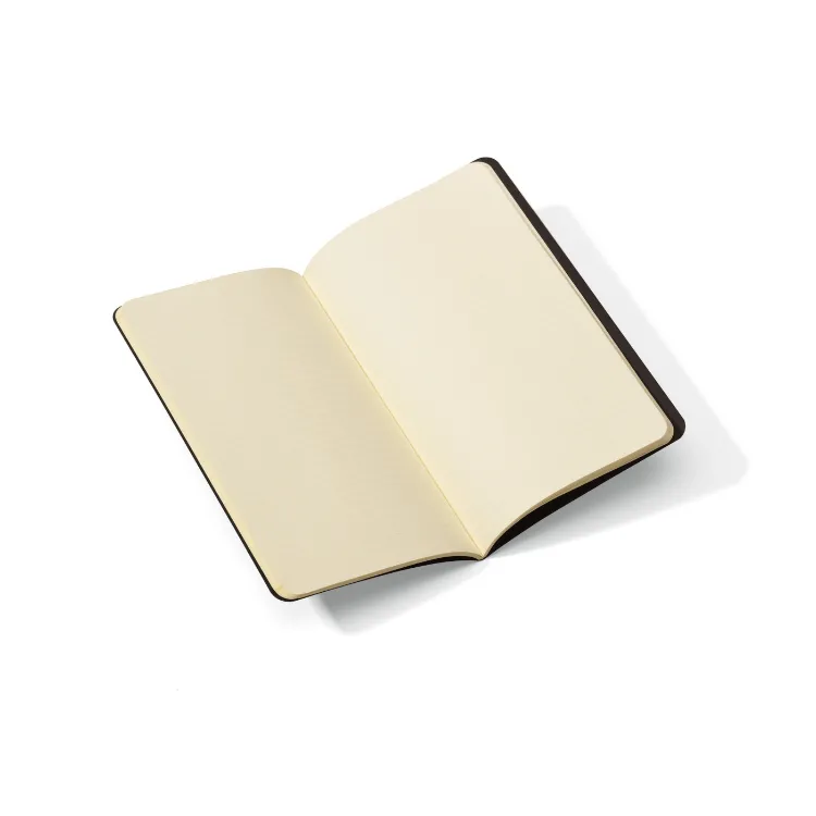 Designed for everyday use, this lightweight journal includes 80 ruled pages of FSC-certified ivory paper with a flexible cover and visible stitching. It features a convenient flap pocket inside the back cover and detachable sheets for added flexibility. A compact, professional option for note-taking or idea capture, ideal for meetings, conferences, or client gifting.
