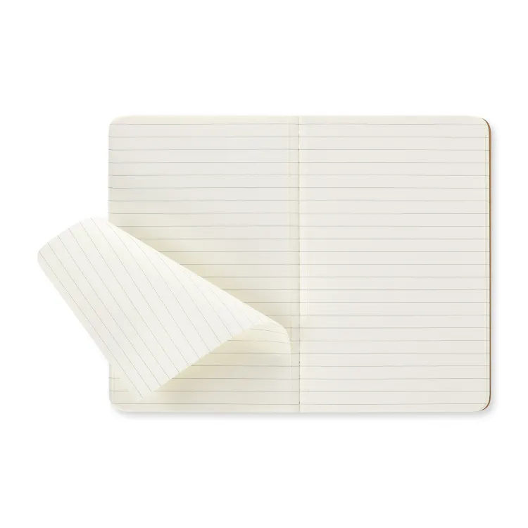 This compact journal features 64 ruled pages of FSC-certified ivory paper and a flexible, stitched cover that keeps it light yet functional. Ideal for quick notes or meetings, it includes a flap pocket for loose sheets and detachable pages for clean tear-out. A PVC-free option built for efficient writing in professional settings.