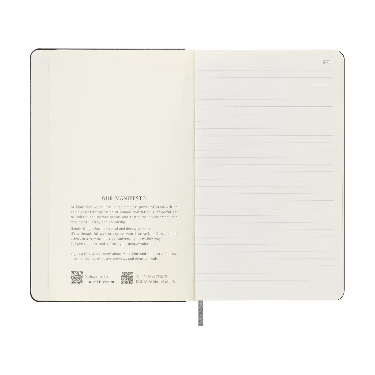 Designed for seamless analog-to-digital writing, the Moleskine Hard Cover Ruled Large Smart Notebook features Ncoded pages that work with the Moleskine Smart Pen to instantly digitize handwritten notes (pen not included). Its acid-free ivory pages, lay-flat binding, and expandable pocket support both everyday use and smarter organization.