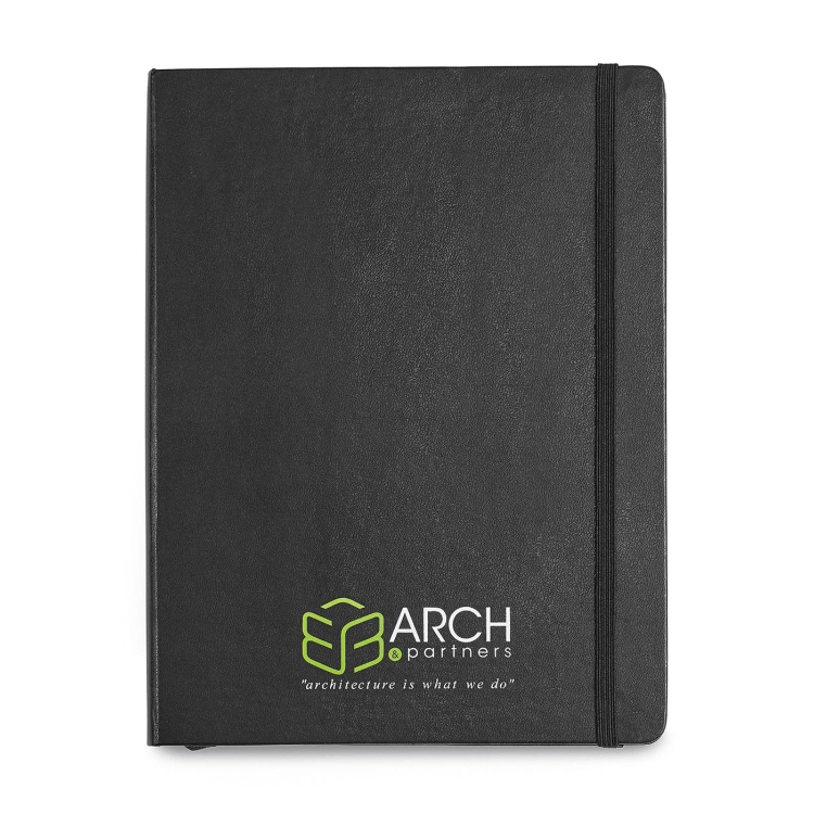 Sized for larger-format planning, this hardbound notebook includes 192 ruled pages of FSC-certified ivory paper. Its durable cover lies flat for a smooth writing experience, and features an elastic closure and ribbon bookmark for convenience. A rear expandable pocket adds storage for documents or notes, making it a reliable choice for professional use.