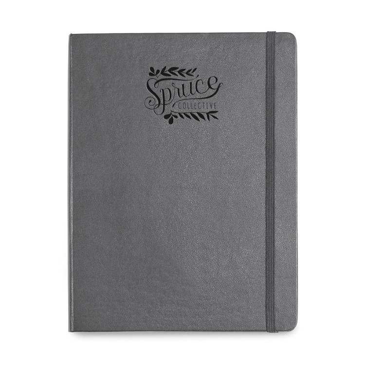 Sized for larger-format planning, this hardbound notebook includes 192 ruled pages of FSC-certified ivory paper. Its durable cover lies flat for a smooth writing experience, and features an elastic closure and ribbon bookmark for convenience. A rear expandable pocket adds storage for documents or notes, making it a reliable choice for professional use.