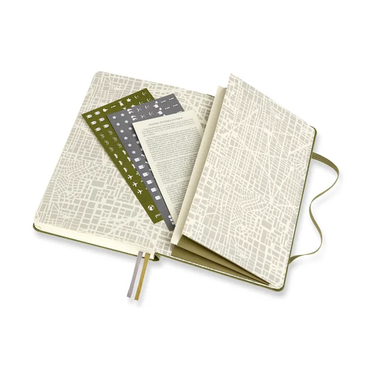 The Moleskine Passion Journal - Travel is designed to capture every journey, from weekend escapes to major adventures. With 400 pages, it includes structured sections for planning, reflecting, and dreaming, plus helpful intro pages like an 8-year calendar. Tabbed layouts, ribbon markers, and a dual-pocket system add function to its thoughtful design, making it a long-term travel companion.