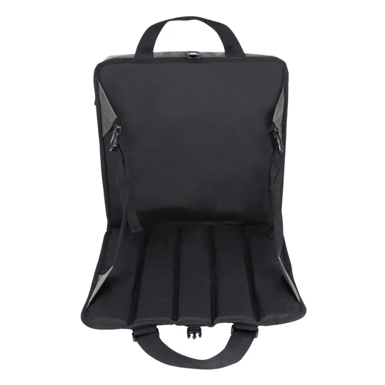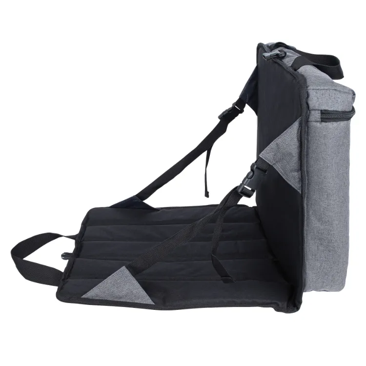 The Montgomery Stadium Cooler Seat Backpack - 18 Can combines convenience and comfort with its 18-can capacity and durable 300D polyester construction. Featuring a food-grade PEVA heat-sealed lining, it keeps drinks cold for up to 8 hours. The cooler compartment measures 15.5" x 13.75" x 2.75" and doubles as a padded seat with adjustable back support. With top carry handles and adjustable backpack shoulder straps, this versatile cooler is ideal for carrying food and drinks for lunch at work, picnics at the park, or stadium events.