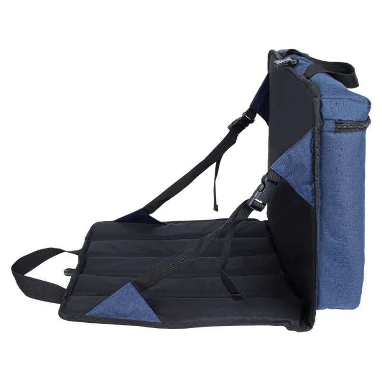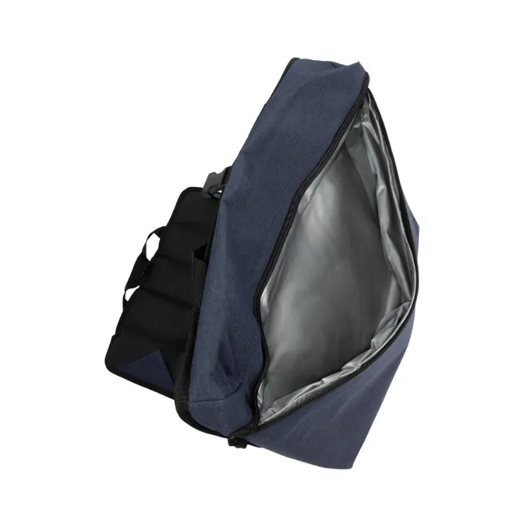 The Montgomery Stadium Cooler Seat Backpack - 18 Can combines convenience and comfort with its 18-can capacity and durable 300D polyester construction. Featuring a food-grade PEVA heat-sealed lining, it keeps drinks cold for up to 8 hours. The cooler compartment measures 15.5" x 13.75" x 2.75" and doubles as a padded seat with adjustable back support. With top carry handles and adjustable backpack shoulder straps, this versatile cooler is ideal for carrying food and drinks for lunch at work, picnics at the park, or stadium events.