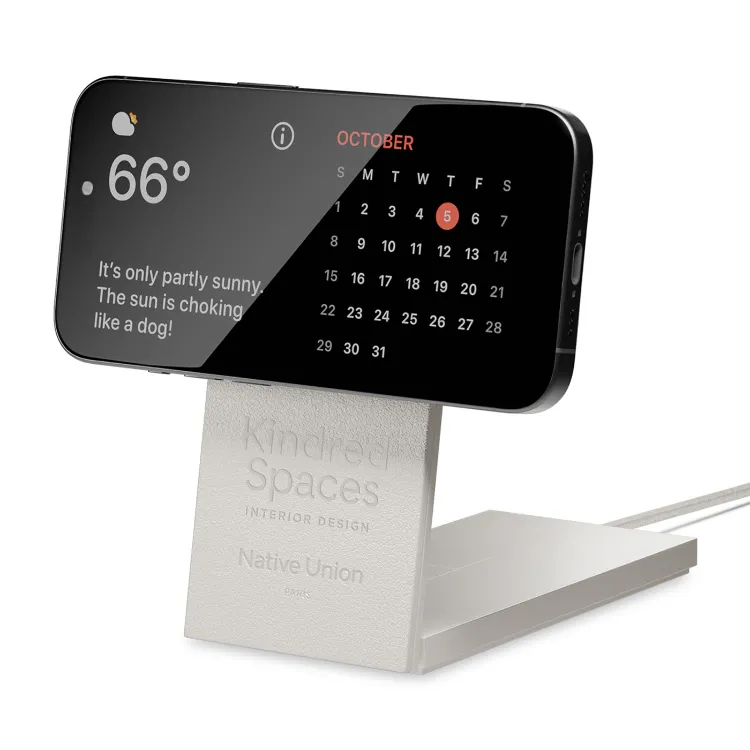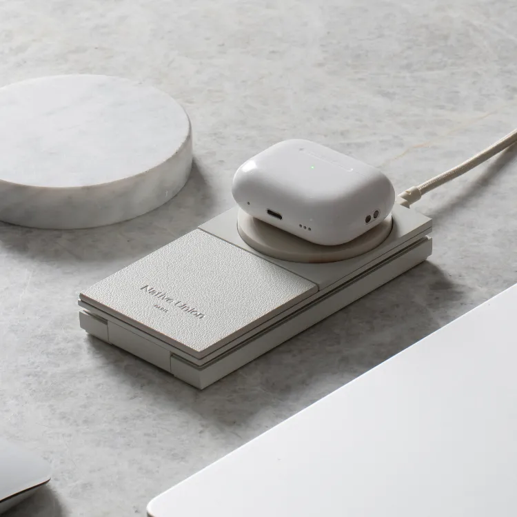 This foldable Qi2 charging stand supports simultaneous wireless charging for your iPhone and AirPods, with up to 15W of power and full MagSafe compatibility. Its adjustable angle lets you stream or view in StandBy mode, while a weighted base allows easy grab-and-go access. A compact profile, discreet LED indicator, and included USB-C cable make it a highly functional desktop or travel companion.
