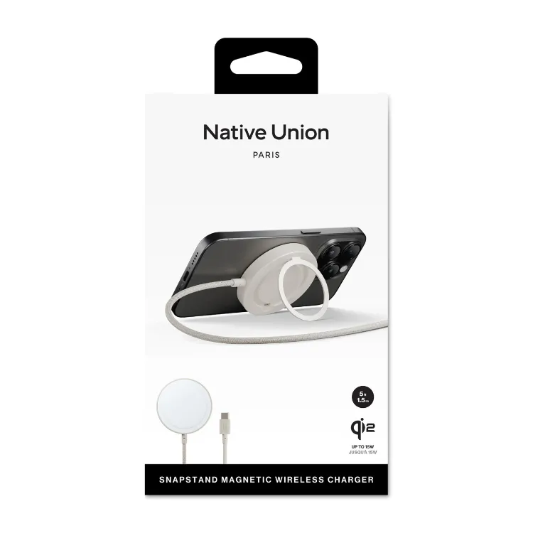 This Qi2-certified charger combines fast wireless charging with versatile hands-free functionality, thanks to its built-in kickstand. Designed for MagSafe-enabled iPhones, it delivers up to 15W of efficient power, while the extra-long 5ft braided cable offers enhanced durability and reach. Compatible with Qi-enabled phones and AirPods, it's ideal for flexible desk or bedside setups.