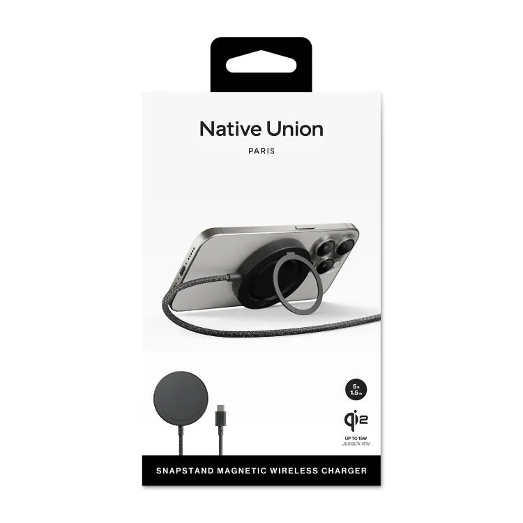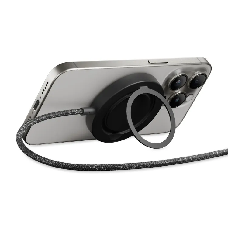 This Qi2-certified charger combines fast wireless charging with versatile hands-free functionality, thanks to its built-in kickstand. Designed for MagSafe-enabled iPhones, it delivers up to 15W of efficient power, while the extra-long 5ft braided cable offers enhanced durability and reach. Compatible with Qi-enabled phones and AirPods, it's ideal for flexible desk or bedside setups.