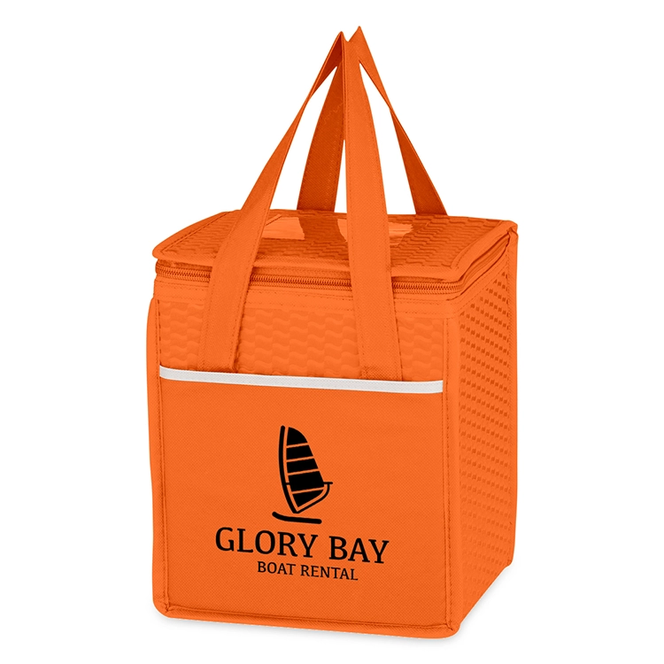The perfect lunch bag if you're planning for a whole day out! This Non-Woven Cooler Lunch Bag with Foil Laminate includes ID Holder. It features 21" handles, zippered main compartment, and large front pocket for easy access. Spot clean only and air dry.
