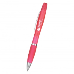 Colored Barrel Plunger Pen With Rubber Grip And Silver Accent